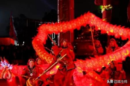 即舞龙灯,演时由七至九人分节手持撑杆举起龙体,碎步起跑,动作多变,有“蛟龙出水”、“蛟龙漫游”、“蛟龙戏水”等多种舞法,有时龙口还会喷火,伴随锣鼓声,场面十分壮观。
